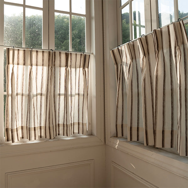 Raw Linen Blend Striped Patterned Semi-Sheer Custom Cafe Curtain