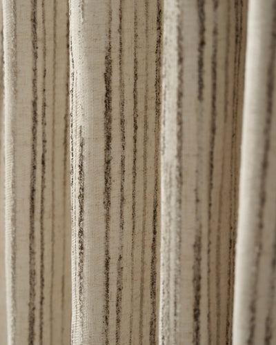 With their striped pattern in soothing neutral colors, Raw curtains provide a gentle, translucent elegance that enhances your space with a quiet, natural beauty.