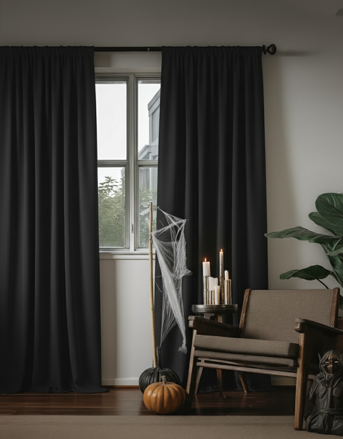 Welcome to TheHues' Halloween Collection: your destination for a complete home transformation. Create a hauntingly elegant atmosphere with curtains ranging from subtle fall palette drapes to fun prints with seasonal colors. Designed for a cohesive and immersive seasonal experience, this edit brings mysterious style to your space. Explore the collection to set a perfectly undeniable Halloween scene.