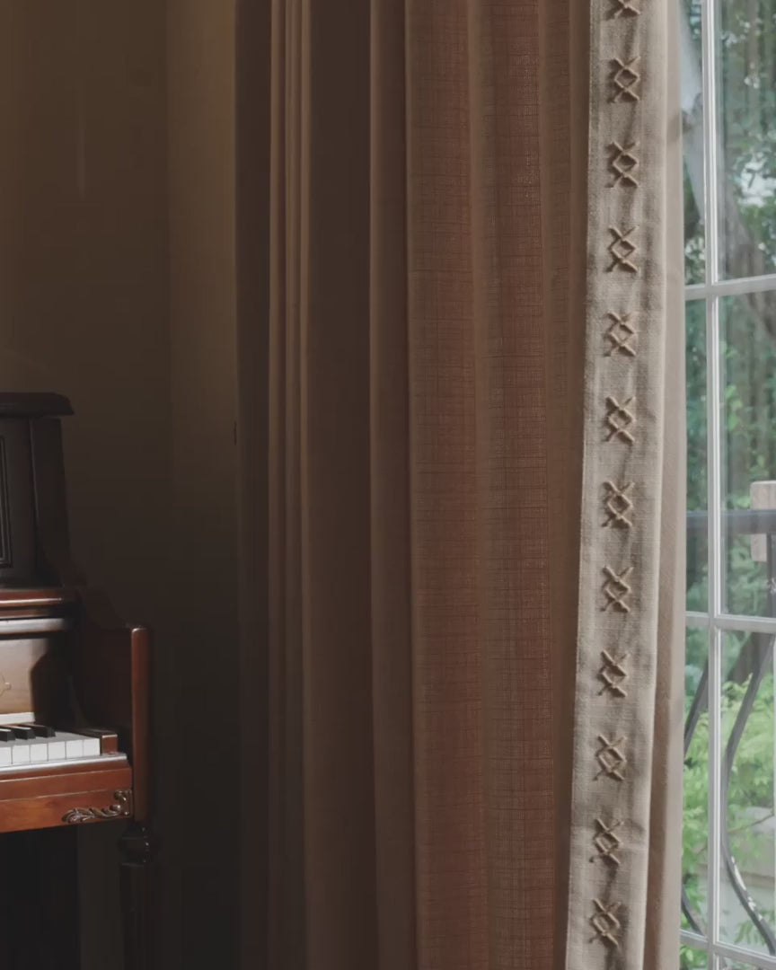 Sahara 100% Blackout Linen Blend Patterned Custom Curtain