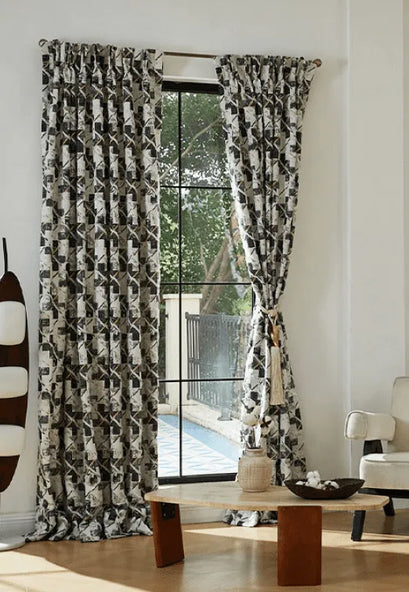 Deconstructed Linen & Wool Blend Heavyweight Geometric Fringed Patterned Custom Curtain
