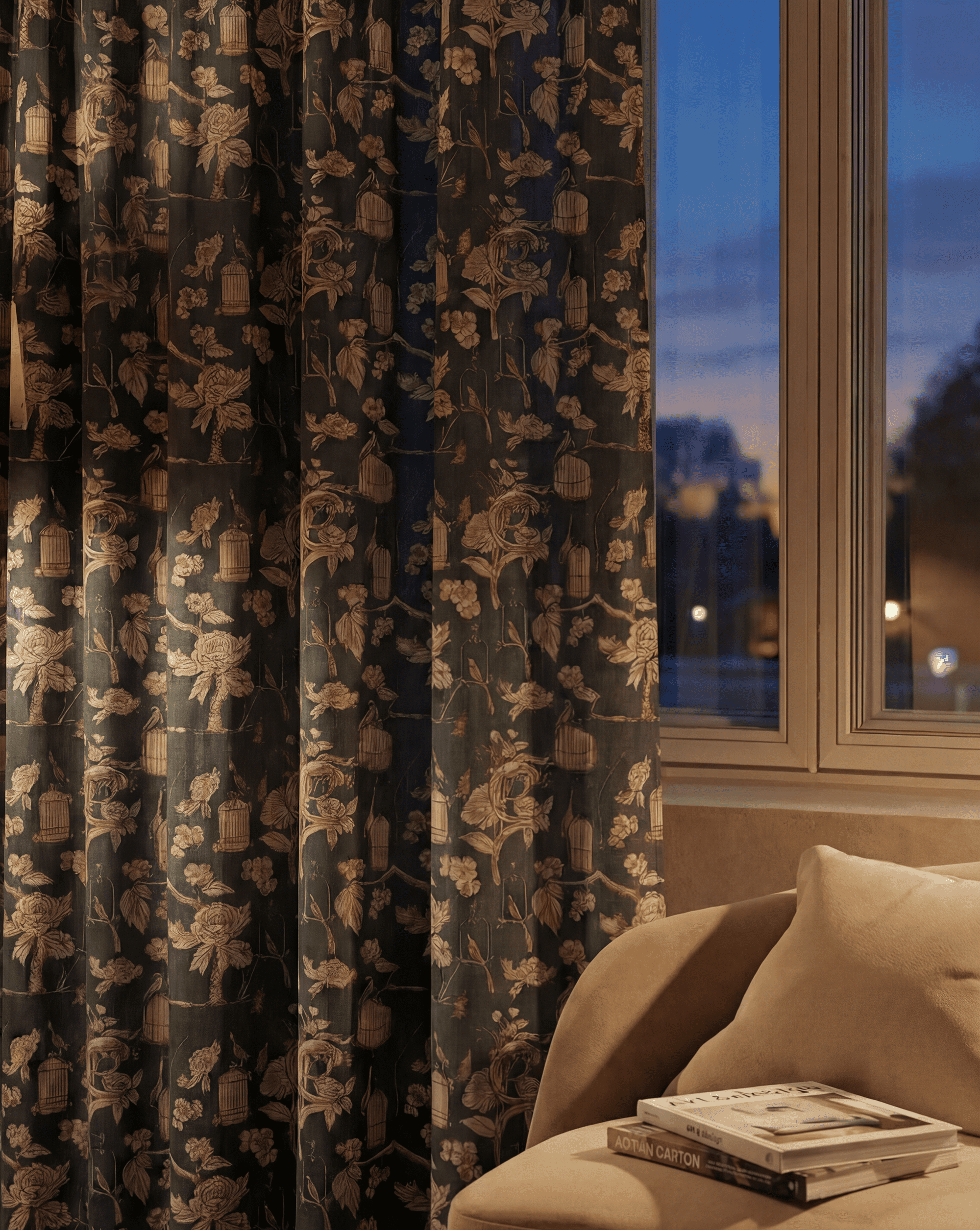 Seeker Linen Blend Floral Patterned Custom Curtain
