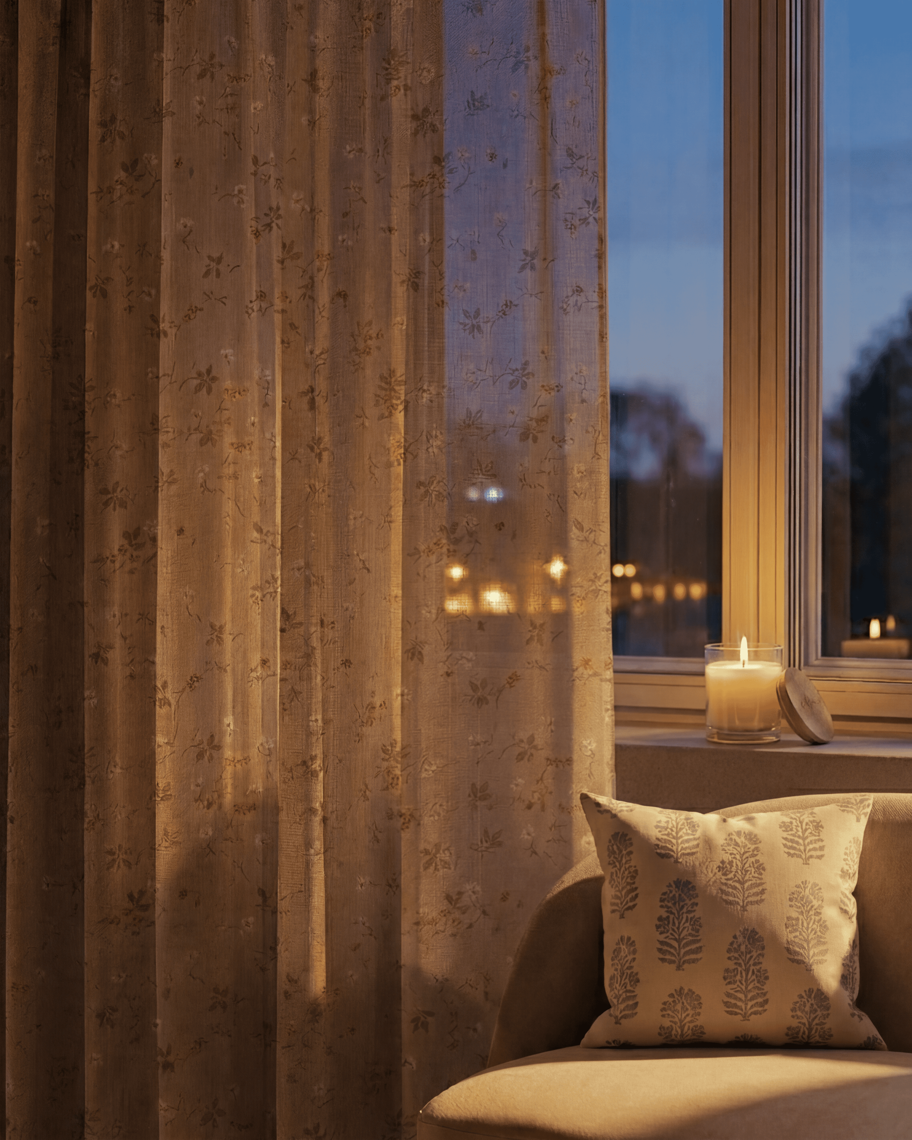 Whisper Linen Blend Floral Patterned Custom Curtain