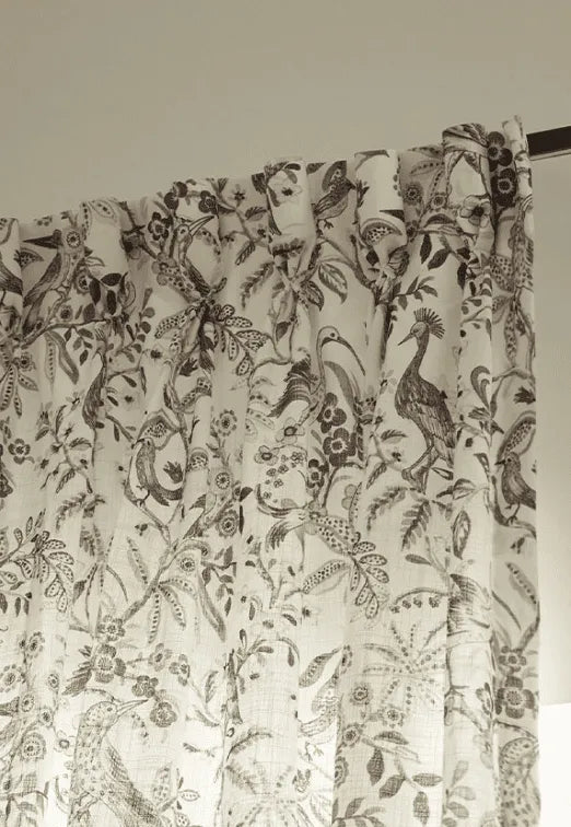 Peacock Linen Blend Heavyweight Floral Patterned Custom Cafe Curtain