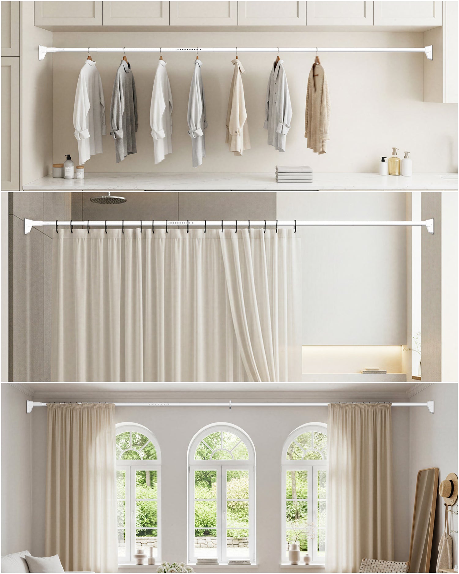 Heavy Duty Adjustable No Drill Tension Curtain Rod