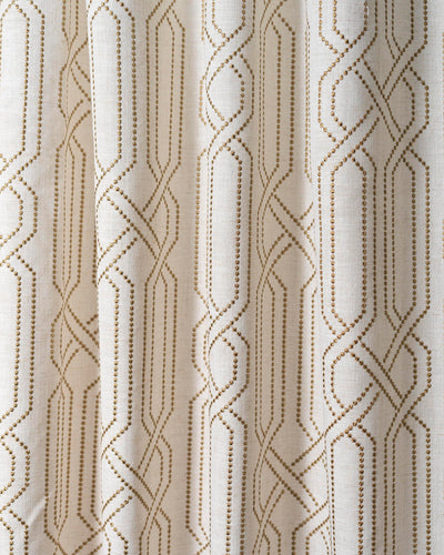 Confectionné dans un luxueux mélange de laine et de lin, ce rideau allie la chaleur naturelle de la laine à l'élégance aérienne du lin. Son motif géométrique complexe apporte de la profondeur et crée un point focal raffiné pour tout espace.