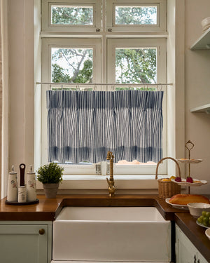 Rideau de café personnalisé à rayures en mélange de lin Milo