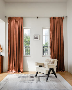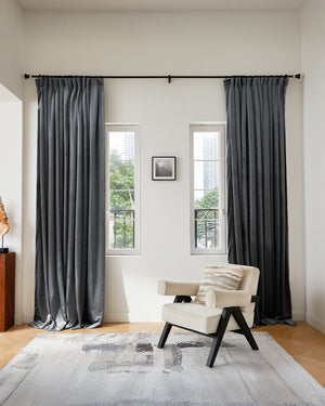 We typically recommend positioning the rod 4"-8" above the window frame, with the exact height determined by the wall space available and your light-blocking needs.STEP 4