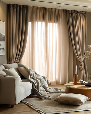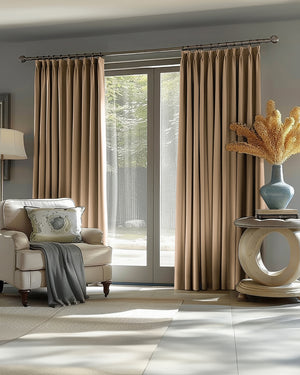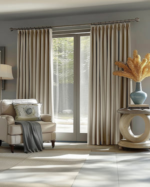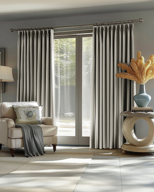 Rideau sur mesure Victoria 100 % occultant, aspect lin OEKO, poids lourd