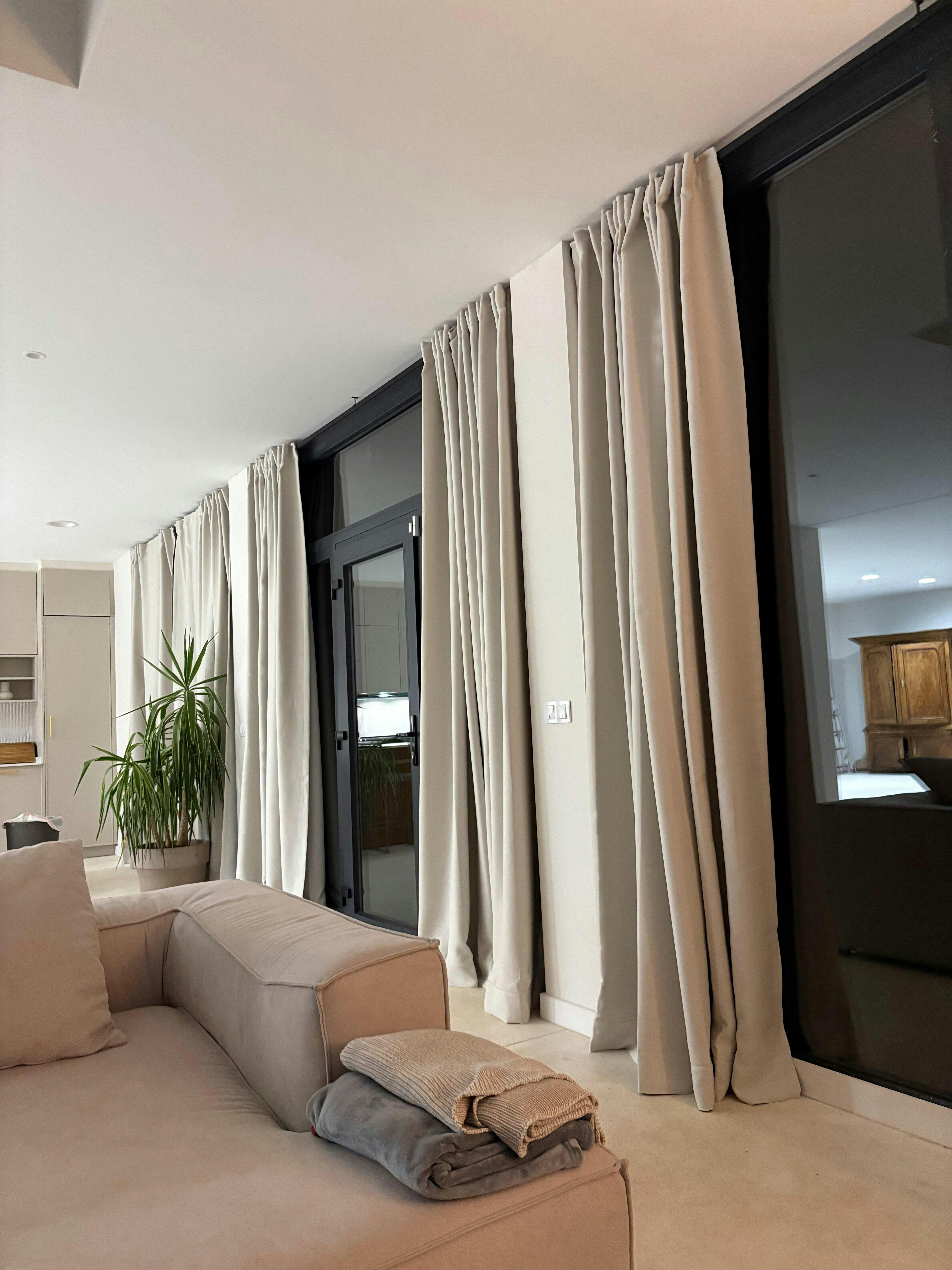 We typically recommend positioning the rod 4"-8" above the window frame, with the exact height determined by the wall space available and your light-blocking needs.STEP 4