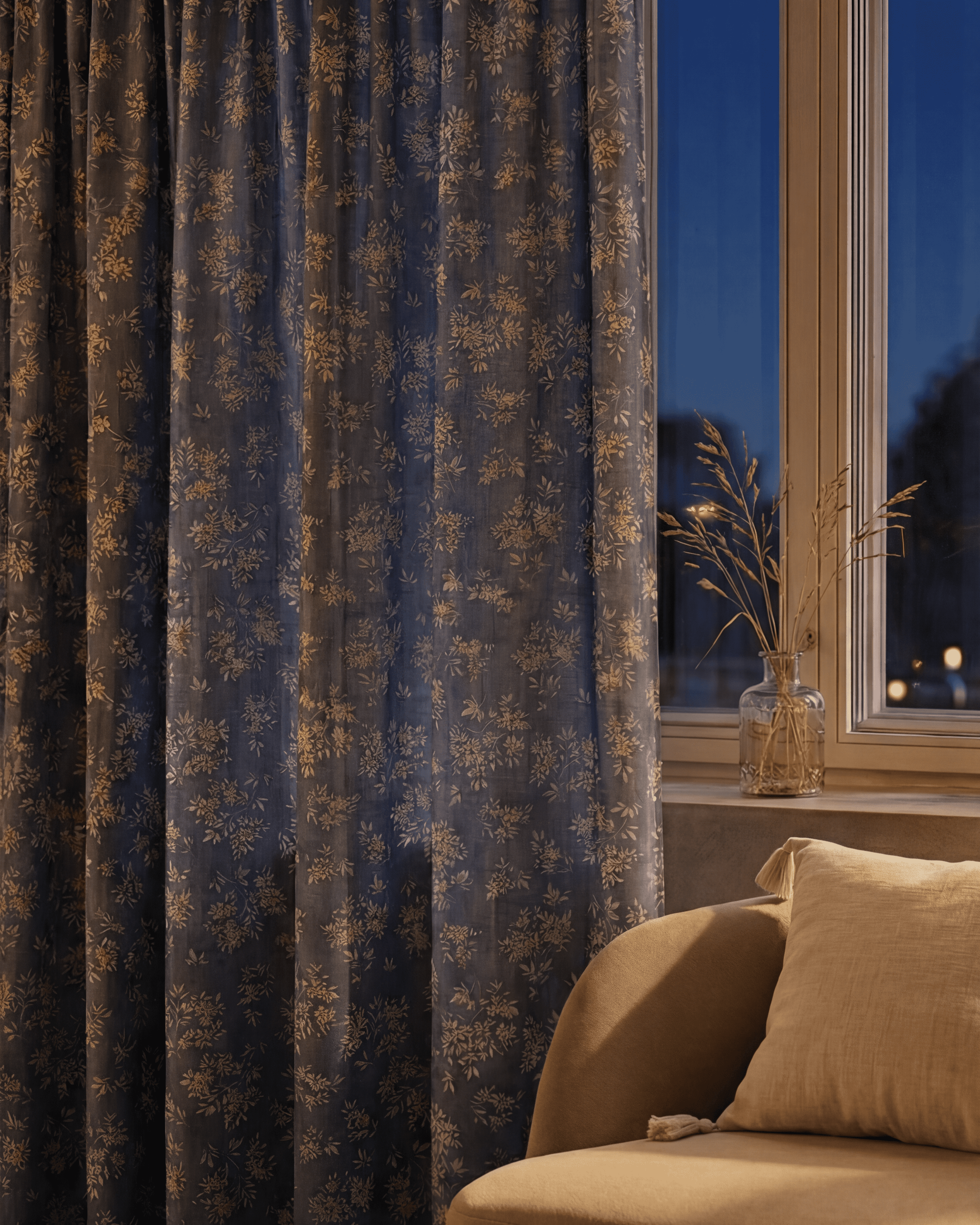 Haven Linen Blend Floral Patterned Custom Curtain