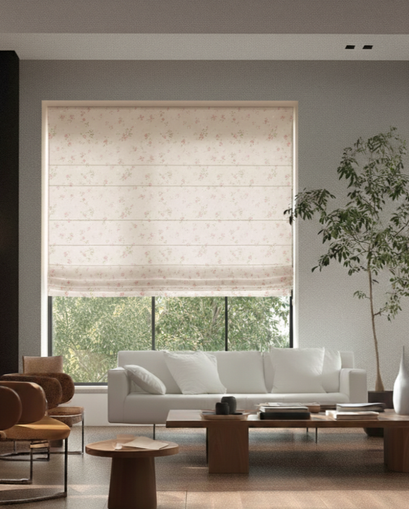 Whisper Flat Fold Floral Patterned Custom Roman Shade