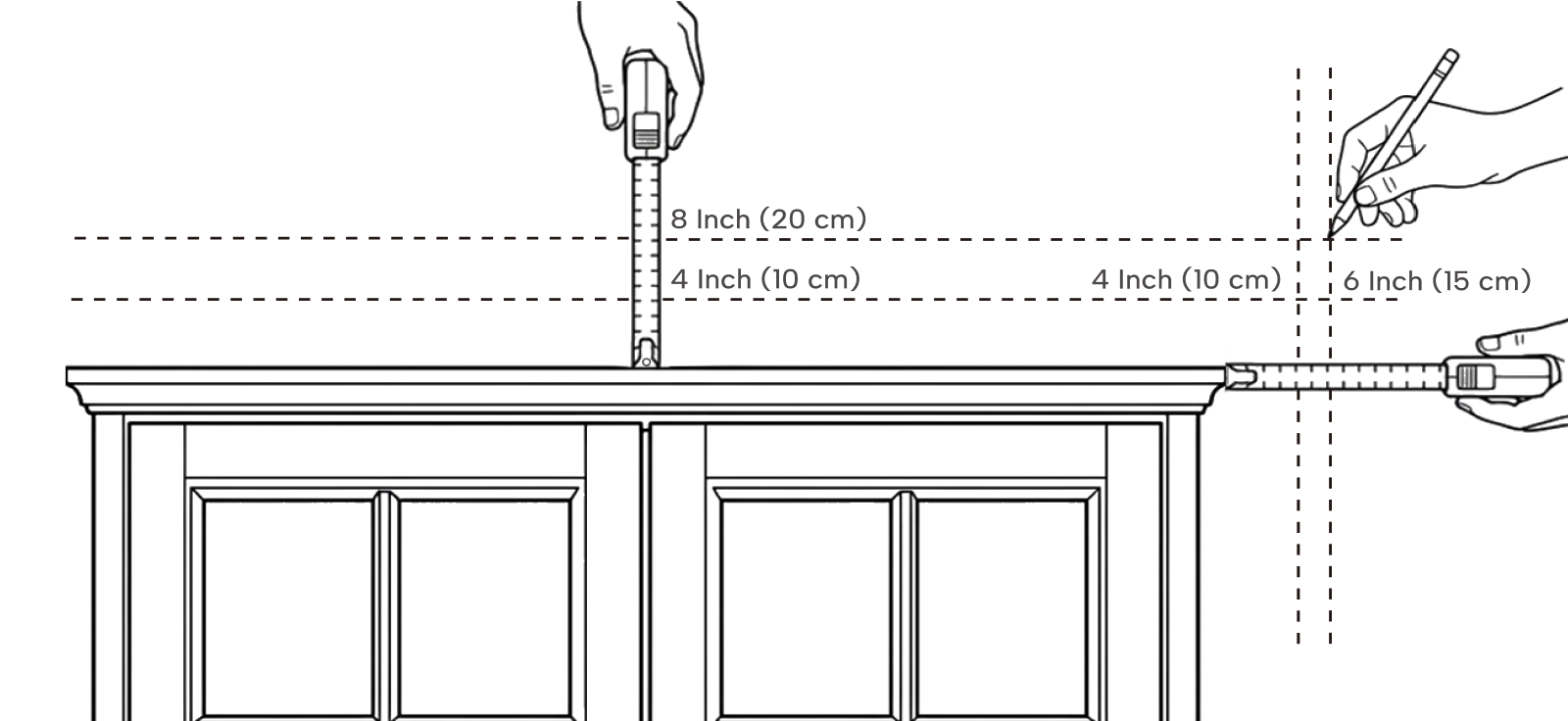 Standard practice is to mount 4–8 inches (10-20 cm) above the top