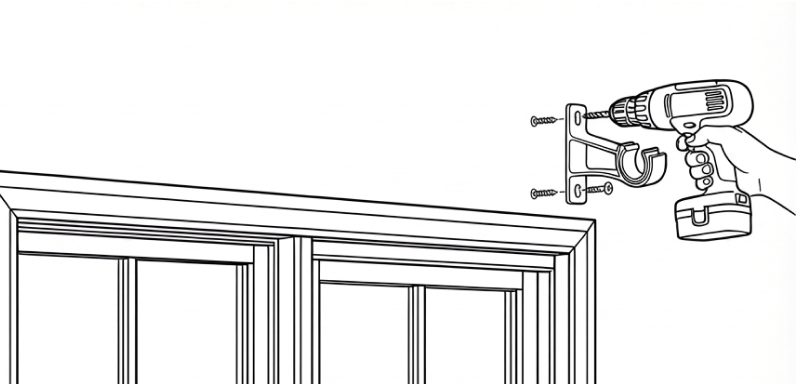 of the window frame and the brackets should be positioned 4-6 inches (10-15 cm) inward from each end of the Roman rod (finials excluded).