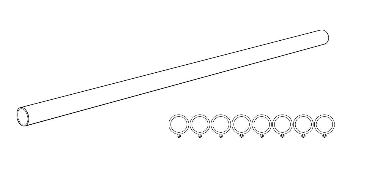 Curtain Rod plus approximiately 1 Roman ring every 5 inches (8 per meter).