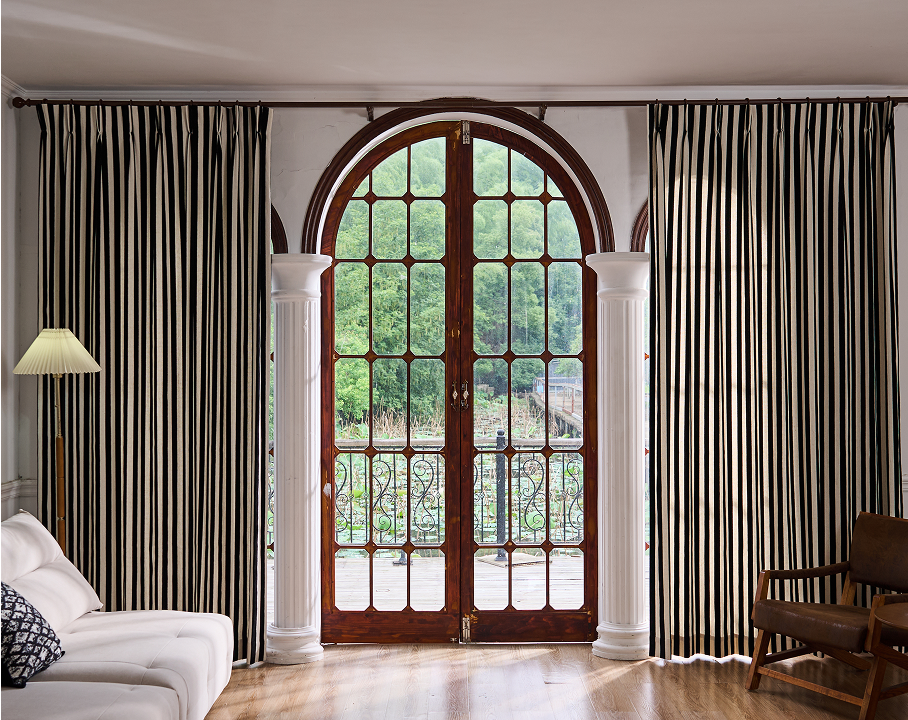 * Fully customized curtain headers, panel sizes (including extra-long and extra-wide drapes), and lining options tailored to each project.
