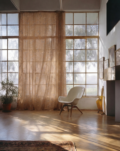 Amber Floral Patterned Sheer Custom Curtain