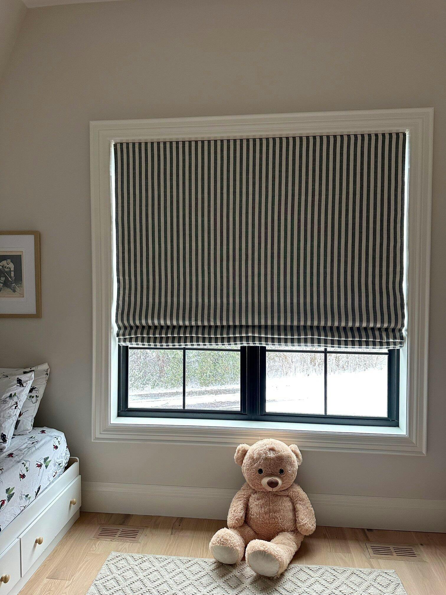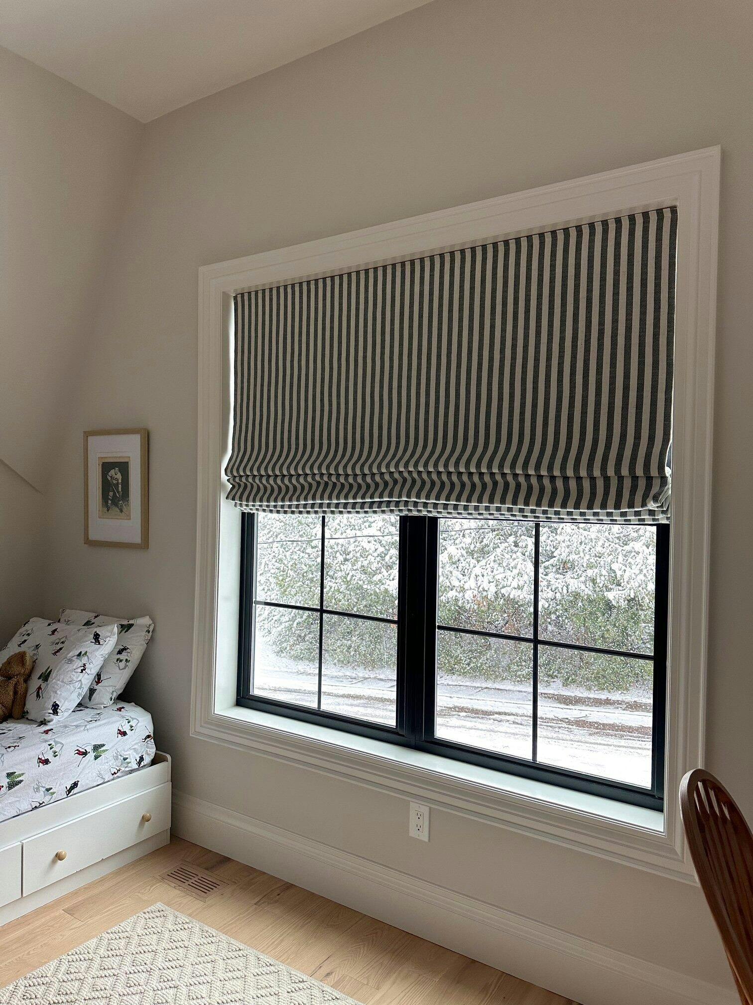 Milano Flat Fold Linen Blend Striped Custom Roman Shade