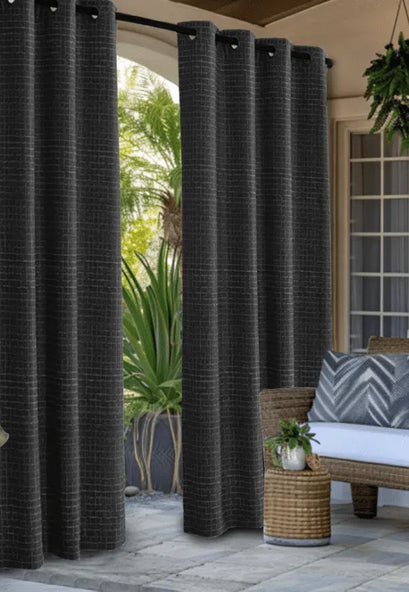 New York Grid Patterned Textured Waterproof Custom Outdoor Curtain