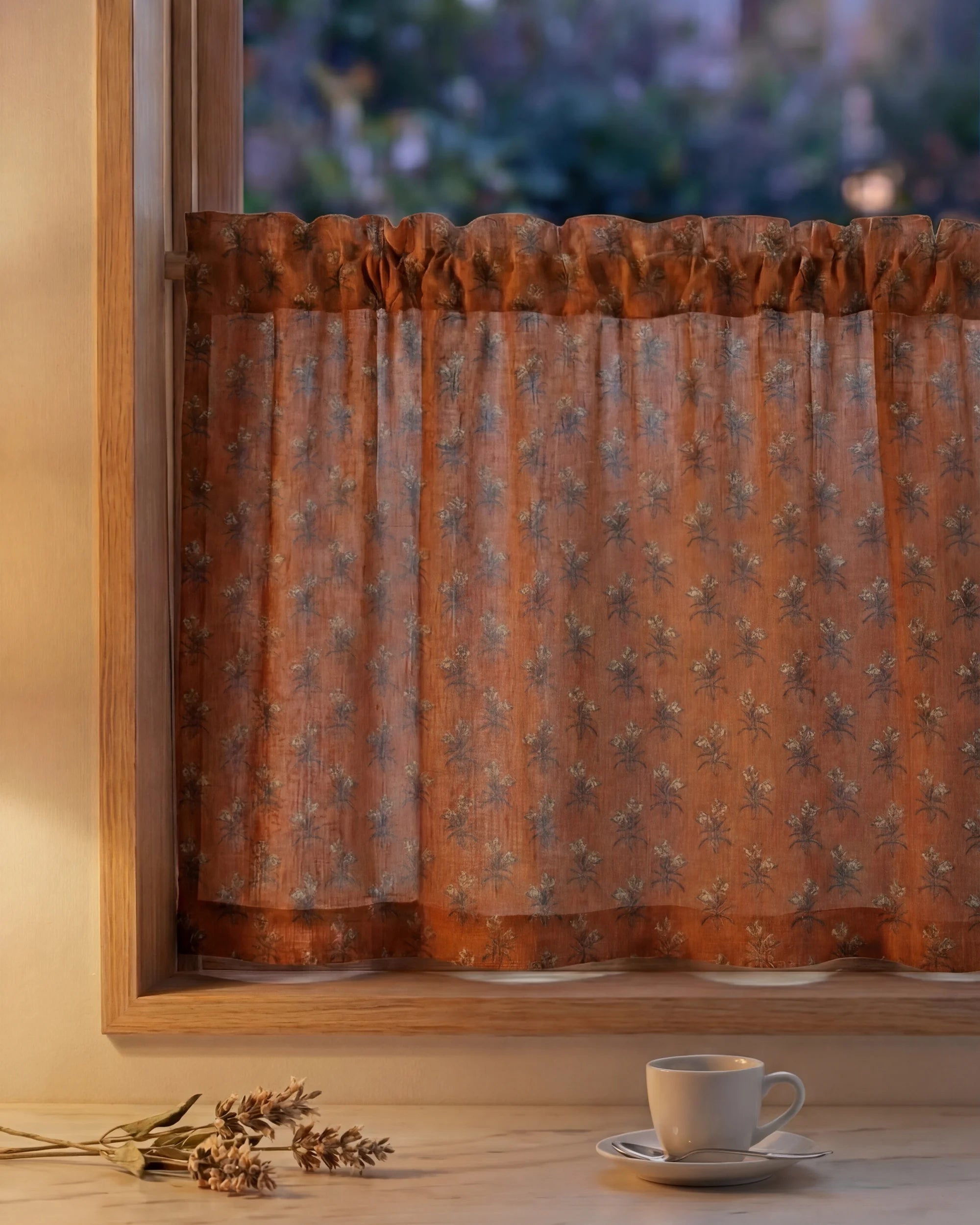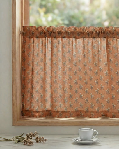 Rhythm Floral Patterned Custom Cafe Curtain